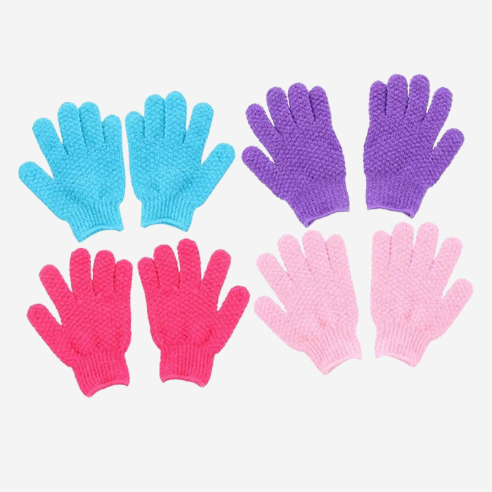 A textured bath glove that gently exfoliates and smooths skin for a refreshed, polished feel.